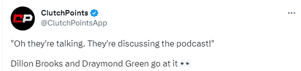 美媒纷纷转发格林和狄龙险些冲突一幕,ClutchPoints写道:他们正在谈论关于播客的事情;此前狄龙和格林在播客上隔空互怼,狄龙表示不喜欢格林和勇士,格林则骂狄龙是笨蛋,目前狄龙已经吃到16次技术犯规,此前已经被联盟自动禁赛一场,格林本赛季已经累计15次技犯,再吃一次技犯就要被禁赛一场。