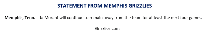 由于在夜店炫耀枪支,此前莫兰特已经被球队禁赛了两场比赛。