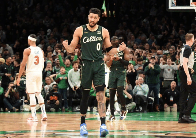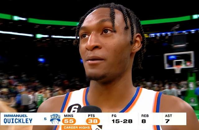 但第三节后半段,尼克斯突然发力,奎克利和格莱姆斯连续命中三分,兰德尔、巴雷特在内线也连续得分,三节结束尼克斯已经88-87反超1分。末节开局,尼克斯又打出12-2的攻击波,领先到11分。凯尔特人如梦初醒,霍福德三分命中吹响反击号角,布朗和塔图姆连续得分,斯玛特命中后,凯尔特人又追到104平。