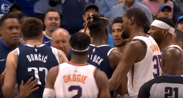 JRS直播网讯03月06日,NBA常规赛太阳客场130-126击败独行侠,关键时刻,杜兰特亮出死神镰刀,全场17投12中带领太阳延续连胜,关键时刻,布克和东契奇互喷冲突,杜兰特等人劝架;名记揭秘两人冲突原因,布克嘲讽东契奇,后者爆粗口让布克闭嘴。