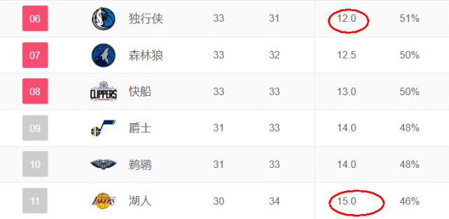 目前,湖人30胜34负,排名西部第11位,距离西部第6的独行侠已经有3个胜场的差距。对他们来说,更现实一点的目标应该是进入附加赛区,目前湖人距离第10的鹈鹕还差1个胜场。