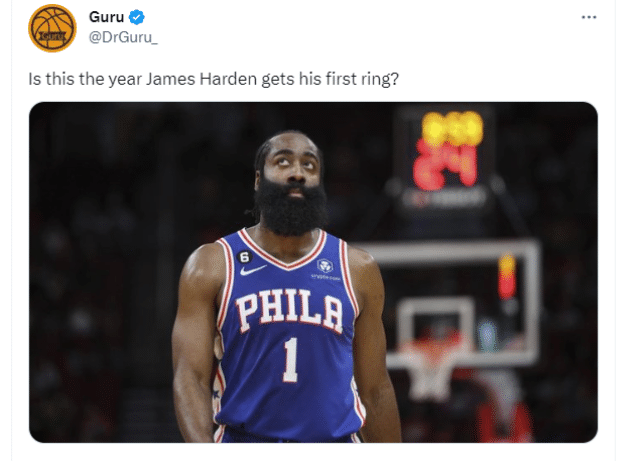 知名球评Guru在社媒上晒出了哈登照片,写道:“今年会是哈登拿下生涯首冠的赛季吗?”大家觉得呢?