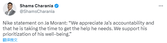 JRS直播网讯03月05日,灰熊球星贾-莫兰特夜店持枪事件引热议,NBA联盟介入调查,灰熊官方宣布莫兰特离开球队,至少缺席接下来的两场比赛;莫兰特已经公开道歉,之后耐克对此事发表官方声明:我们(耐克)感谢贾-莫兰特的责任心,他需要花费一些时间来寻求帮助。我们支持他优先考虑如何把自己的问题解决好。