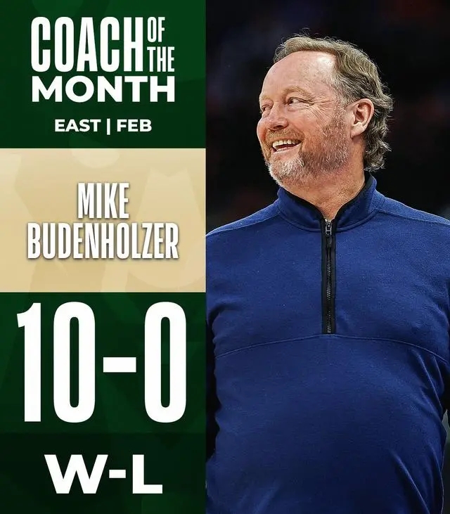 在整个2月份,布登霍尔泽在2月份率领雄鹿取得10胜0负的战绩,目前排名东部第1位,球队目前正处于一波16连胜之中。