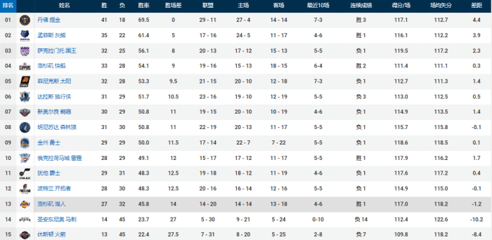 JRS直播网02月23日讯 NBA全明星结束之后,各队休战数天,一直到2月24日才有比赛,常规赛重燃战火,也进入到最后的冲刺阶段。西部的看点十足,目前除了第一的掘金和第二的灰熊之外,各队的位置都不稳固,排名西部第13的湖人都有机会进入到附加赛,甚至主帅哈姆在接受采访的时候表示球队的目标是西部前六,这样就可以避免参加残酷的附加赛。