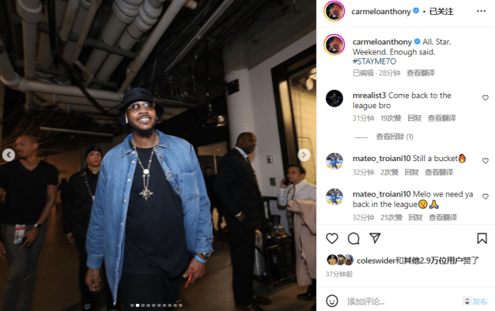 球迷在安东尼评论区留言,很多人都希望甜瓜能够重返NBA。
