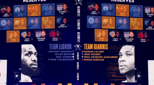 字母哥第四轮选择德罗赞,詹姆斯选择哈利伯顿;字母哥第五轮选择西亚卡姆,詹姆斯选择兰德尔;字母哥第六轮选择阿德巴约,詹姆斯选择福克斯。替补的最后一轮,字母哥选择萨博尼斯,把小贾伦-杰克逊留给詹姆斯。