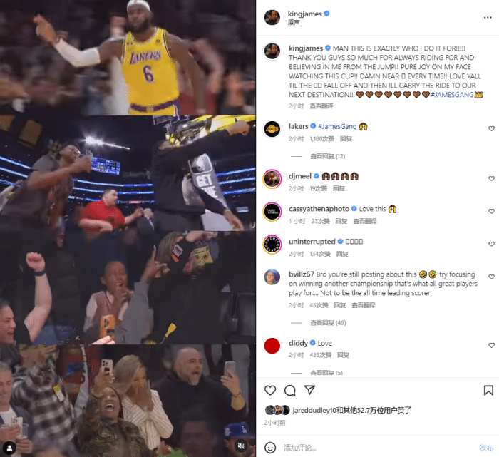 詹姆斯再次晒出破纪录加冕历史得分王后家人的反应,写道:天啊,我这么做都是为了他们!太感谢你们了,感谢你们从一开始就永远支持我和相信我!看到这段视频时,我的脸上只有纯粹的快乐!靠,我都快哭了,每一次看都是如此!爱你们所有人,直到轮胎脱落,然后我将引领我们去往下一个目的地。