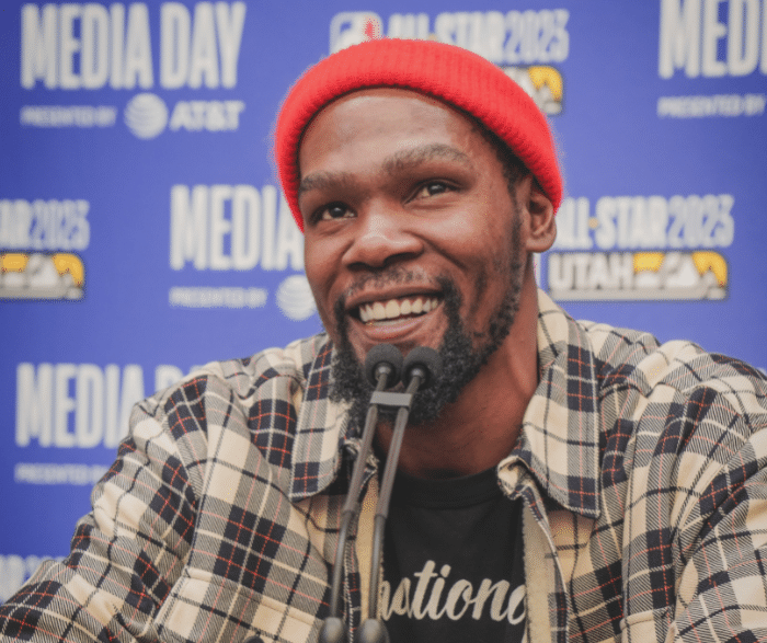 JRS直播网讯02月19日,NBA全明星周末迎来媒体日,詹姆斯因个人原因缺席,杜兰特、欧文、德罗赞、莫兰特、锡安等球星都接受采访,其中篮网两大旧将杜欧回应申请离队,杜兰特直言这对联盟有利,欧文也发声并坦言篮网生涯没有遗憾。