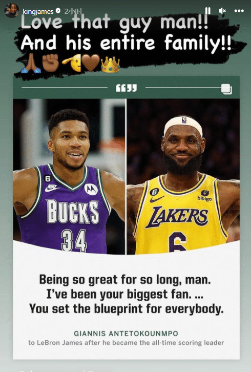 JRS直播网02月18日,字母哥在球员通道中当面祝贺詹姆斯加冕历史得分王的画面曝光,詹姆斯转发并且表示感谢,还转发自己破纪录时全家人疯狂庆祝的真实反应。