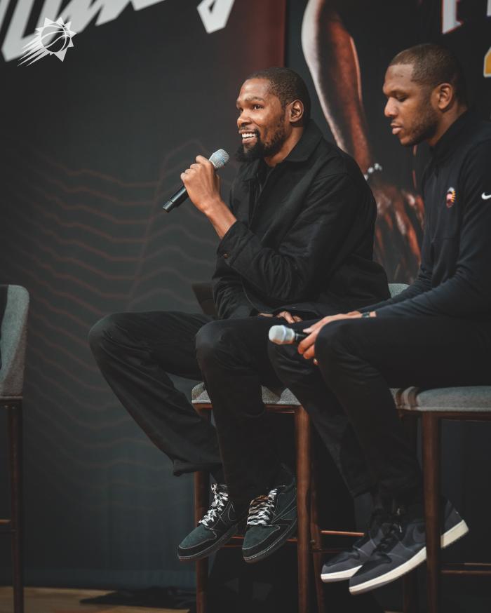 谈到加盟太阳后的夺冠目标,杜兰特表示:这就是我们打篮球的原因,我们理解这一点。但我更关心的是我们作为一个团队每天所做的事情——那些你们看不到的事情。我认为能让我们处于赢得总冠军位置的是我们每天投入的工作,所以我很期待;我知道总冠军对一支球队和一座城市有多重要,我已经参与过两次,我期待着再次做到这一点。