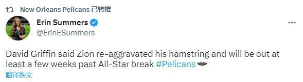 JRS直播网02月13日,鹈鹕官方宣布,球队总裁大卫-格里芬公布锡安的最新伤情,锡安的腿筋伤势加重,他将在全明星周末后继续缺席数周,并将在全明星后接受重新评估;赛季至今,锡安仅出战29场却已缺席28场比赛,腿筋拉伤后已连缺20场,彻底沦为玻璃人。