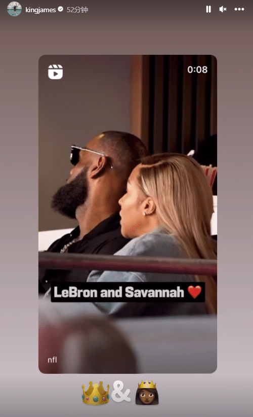 詹姆斯晒出自己现场观看超级碗,配上王冠和王后的表情。
