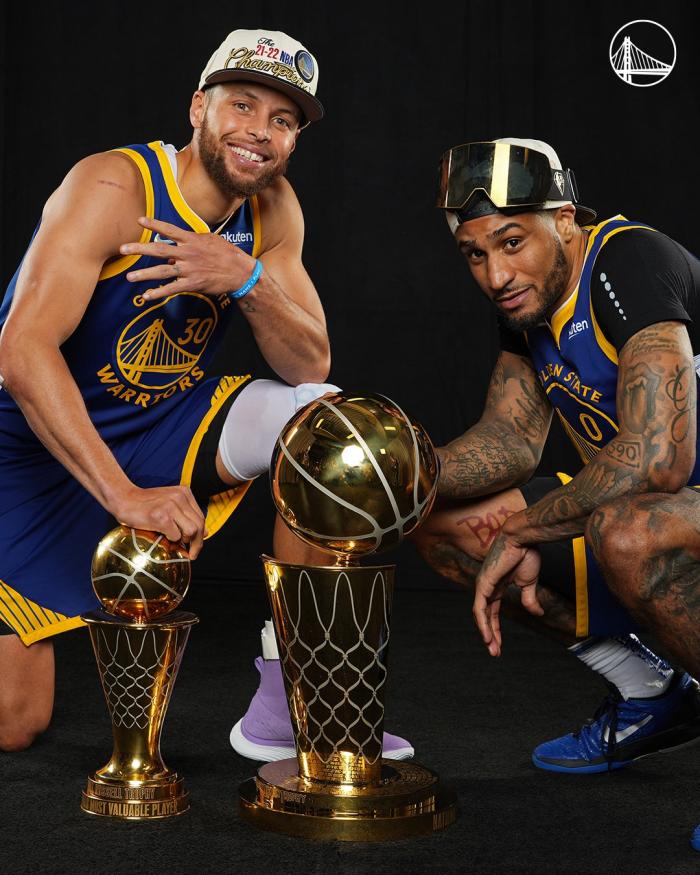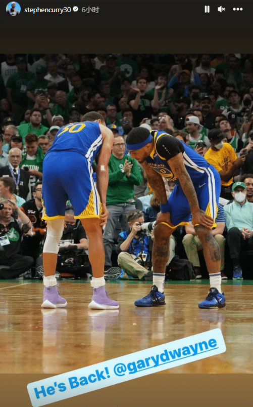 由于勇士0号现在属于迪温琴佐,小佩顿重返勇士后改穿8号,勇士当家球星库里欢迎小佩顿回归,晒夺冠合影并且高呼:他回来了!