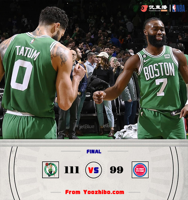 JRS直播网讯:北京时间2月7日,NBA常规赛,活塞主场对阵凯尔特人。最终,凯尔特人111-99战胜活塞。