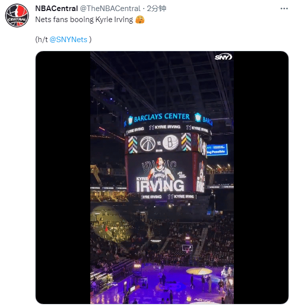 JRS直播网02月05日讯 ,欧文申请离队引热议,今天主场对阵奇才,欧文因小腿酸痛缺席比赛,赛前篮网在主场大屏幕上介绍欧文时,巴克莱中心球馆的篮网球迷狂嘘他。