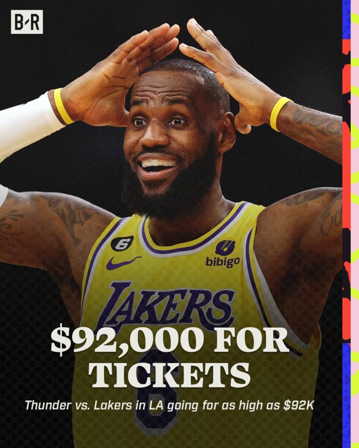 JRS直播网02月03日讯 ,据美媒《露天看台》报道,詹姆斯即将超越贾巴尔加冕历史得分王的效应太大,湖人主场战雷霆的门票价格再创新高,最贵一张门票卖到9.2万美元的天价;湖人官方继续为詹姆斯破纪录而造势:距离得分王仅差89分。