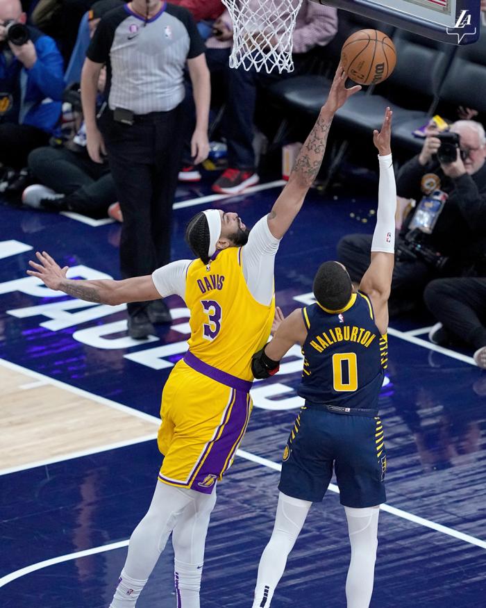 谈到浓眉最后时刻的关键攻防,詹姆斯表示:他每晚都能打出年度最佳防守球员的表现,当我们知道后防线上有AD时,我们非常放心,他可以防守联盟里的任何一个人,我们对此非常有信心,换防后他可以防后卫,他在限制哈利伯顿方面做得很好,并拿下了球权。