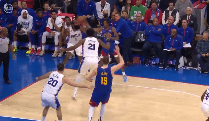 JRS直播网01月29日讯 ,NBA常规赛76人主场126-119逆转掘金,恩比德面对约基奇轰下47分18篮板5助攻,哈登则是拿到17分13助攻串联队友,第三节哈登突然上场“脑袋被砸”抢断,大胡子化身老六偷鸡真相曝光:上场凑人数却不慎被球砸到脑袋。