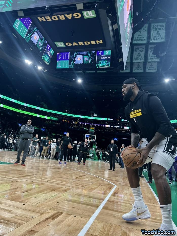 此前詹姆斯(左脚踝酸痛)被列为出战成疑,赛前热身后确定出战,老詹热身时遭现场球迷狂嘘;浓眉的状态也升级为可以出战,詹眉远赴波士顿挑战凯尔特人。