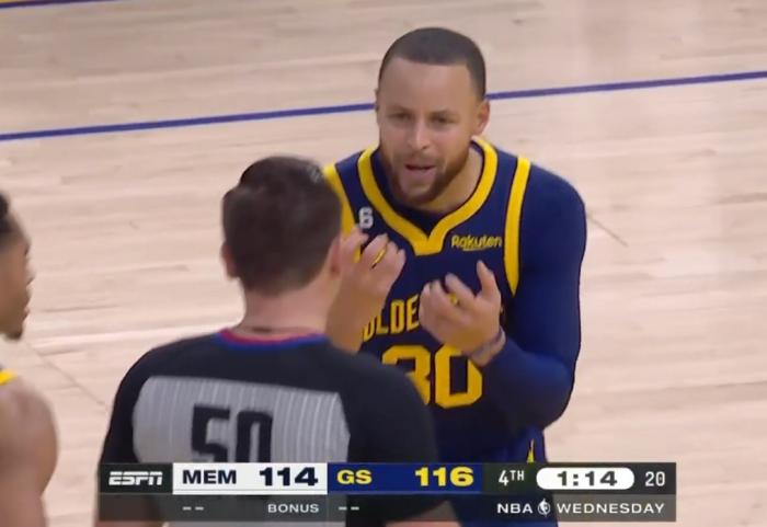 末节还剩1分16秒,库里伸手向普尔要球,普尔没给并且超远三分打铁,之后库里心情沮丧,气得怒摔牙套,把牙套扔进观众席,见状裁判直接把库里驱逐离场,库里找裁判理论仍无济于事,一脸委屈和无奈;库里全场出战34分钟,19投10中、三分8中4拿到34分3助攻2篮板2抢断以及3失误,第一节早早两犯打得很少。