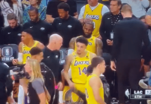 据湖人随队记者Dave McMenamin报道,湖人撤下主力后,第四节威少和施罗德在替补席进行了“激烈的讨论”,当时詹姆斯坐在旁边,一脸沮丧无心搭理他们之间的争论。