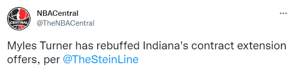 JRS直播网01月08日讯 ,据名记Marc Stein报道,迈尔斯-特纳已经拒绝了步行者的提前续约方案,难道这意味着大交易要来了吗?此前美记曾报道若双方续约失败,步行者将在交易截止日前送走特纳,另外特纳曾公开表态想要加盟湖人。