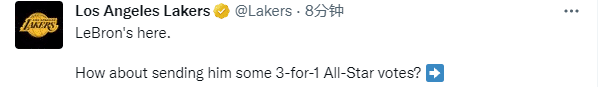 JRS直播网01月07日讯 ,湖人对阵老鹰赛前,官推晒出詹姆斯提前4小时入场的晒照,并且在全明星三倍计票日为老詹拉票:勒布朗在这儿,在三倍计票日为他投票怎么样?不过ESPN宣布将公布詹姆斯的独家专访的声明引热议,球迷已经争起来了。