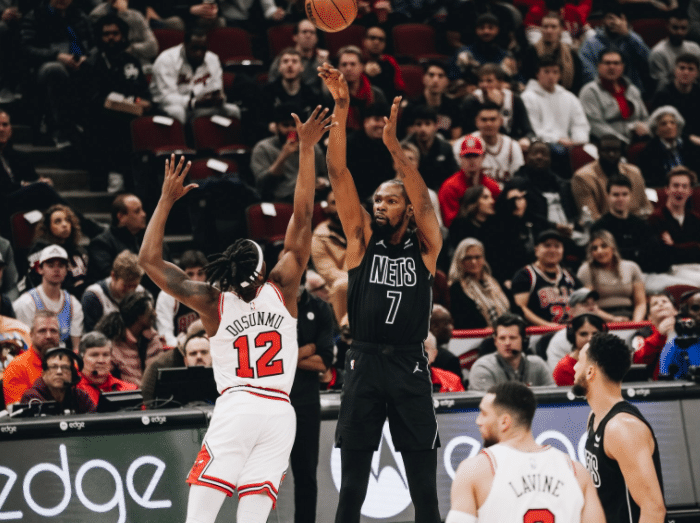 JRS直播网01月05日讯 ,NBA常规赛篮网不敌公牛12连胜遭终结,杜兰特打出疯狂一战,全场22投15中、三分10中5狂砍44分4篮板5助攻2盖帽,杜兰特首节15分,第二节最后216秒连得13分开启杀神模式,一战狂刷纪录,无奈末节仅5分难以出手,12连胜遭终结。