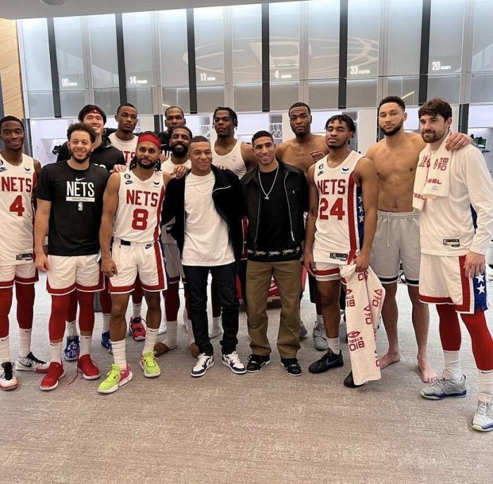 赛后,篮网全队与他们合影留念,姆巴佩和阿什拉夫都站在C位,站在前排的还有乔-哈里斯、托马斯、米尔斯、赛斯-库里和萨姆纳;站在后排的由西蒙斯、TJ-沃伦、杜兰特、欧文、渡边雄太和克拉克斯顿。