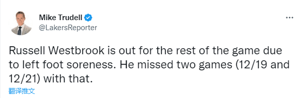JRS直播网01月03日讯 ,NBA常规赛湖人客场对阵黄蜂,朗尼-沃克和浓眉都因伤无法出战,威少出战却因伤提前退出比赛,替补上场11分钟8投1中仅仅拿到2分4篮板2助攻,出现3次失误,不过在场正负值是+8.