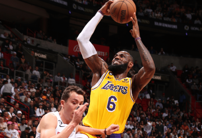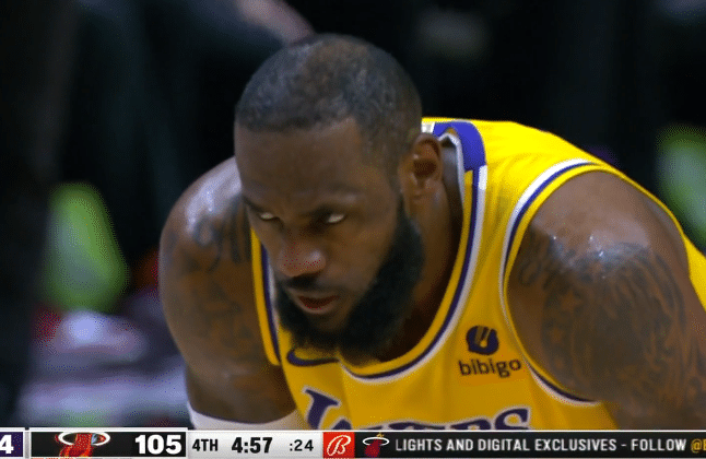 JRS直播网12月29日讯 ,NBA常规赛湖人客场98-112背靠背不敌热火,詹姆斯全场出战34分钟,18投10中拿到27分9篮板6助攻6失误,第一节独砍12分,可湖人第三节一度落后22分,末节詹姆斯累得弯腰扶膝直喘粗气以及顺势躺在地板上,关键时刻连续失误,湖人最后3分半钟集体哑火,最后212秒全队0分。