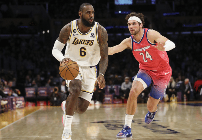 末节,奇才7-0领先到8分,詹姆斯强硬2+1,外线轰进撤步三分,带领湖人11-0夺回领先;两队比分交替上升,托布轰进三分,詹姆斯不讲理2+1,比尔两罚全中,托布再中三分;关键时刻,老詹突破撞开波尔津吉斯后上篮得分,里夫斯关键时刻连续两次抛投,老詹关键一击杀到禁区暴扣,制胜助攻终结比赛,最终湖人赢球笑到最后。