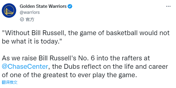 JRS直播网12月11日,在勇士对阵凯尔特人赛前,勇士队正式退役比尔-拉塞尔的6号球衣,致敬11冠传奇;勇士官方晒拉塞尔昔日集锦,配文写道:如果没有比尔-拉塞尔,篮球比赛就不会是今天的样子。