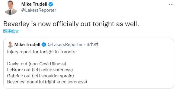 JRS直播网12月08日,湖人客场背靠背对阵猛龙,詹姆斯(左脚踝酸痛)、浓眉(非新冠生病)、贝弗利(右膝酸痛)和加布里埃尔(左肩扭伤)都确定缺席比赛,湖人多名主力休战,威少仍旧替补出战。