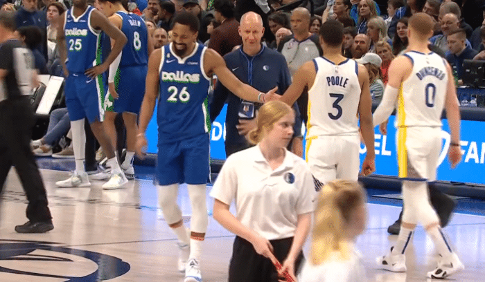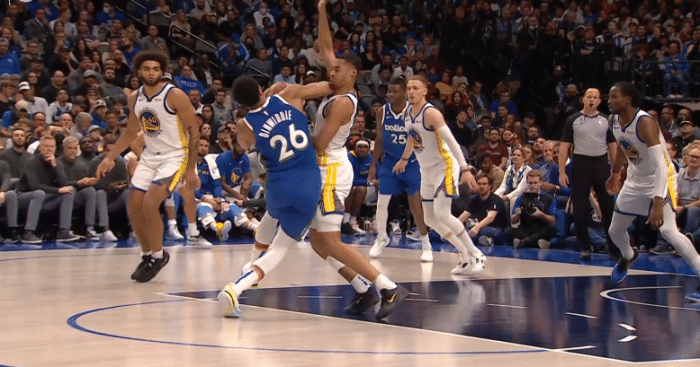 JRS直播网11月30日,NBA常规赛独行侠对阵勇士,第四节场上发生意外事件,丁威迪肘击普尔的下巴吃到二级恶意犯规,直接被驱逐离场。