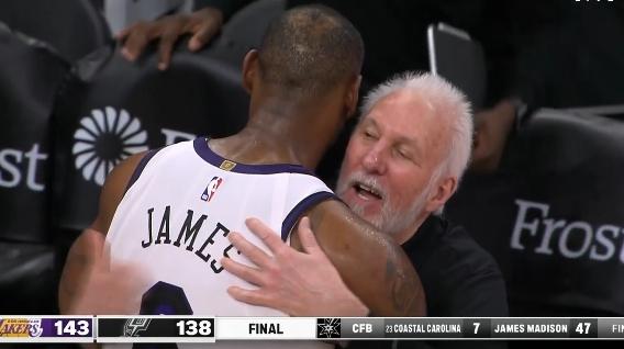 今日赛后,詹姆斯拥抱波波维奇,威少也拥抱波帅向其致意。