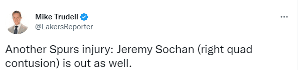 半场打完马刺68-70落后湖人2分,更惨的是马刺连伤两大主力。