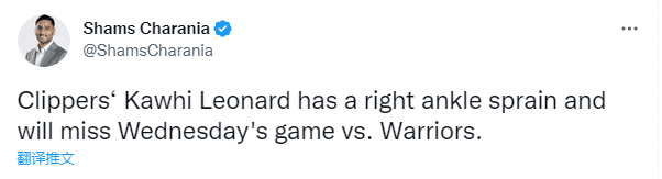JRS直播网11月23日,快船下一场对阵勇士的伤情报告出炉,据名记shams报道,科怀-莱昂纳德因右脚踝扭伤,确定缺席与勇士的比赛,另外快船球员保罗-乔治和神射肯纳德也因伤继续休战。