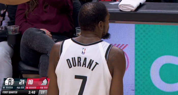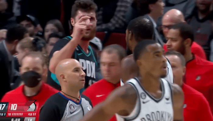 JRS直播网11月17日,NBA常规赛篮网客场对阵开拓者,第一节杜兰特和努尔基奇互喷垃圾话,后者冲着KD比出你太小的嘲讽手势。
