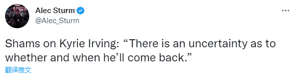 究竟欧文何时才能归队?名记shams在节目中表示他何时归队的时间仍旧不确定。shams还表示篮网放弃聘请乌度卡的一大原因是因为欧文被禁赛。