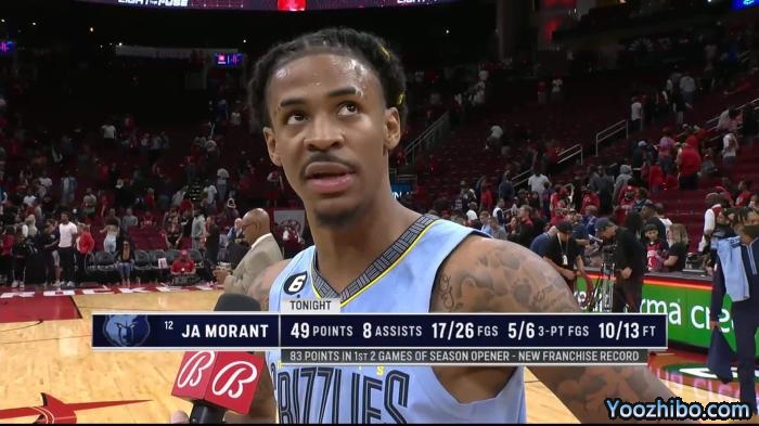 4、莫兰特开赛两战83分创新的灰熊队史纪录