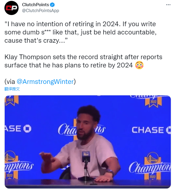 JRS直播网10月21日,勇士球星克莱-汤普森公开辟谣,爆粗直言:我无意在2024年退役,仅仅因为我没打5V5就这样写简直太荒谬了。