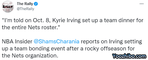 名记shams在节目中表示:我被告知,在10月9日,凯里-欧文为全队安排了一场球队晚宴。