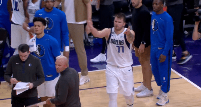 末节,独行侠新援伍德连续命中3记三分,带队打出12-2攻势,并且打停太阳,此时东契奇站在场边乐开怀;暂停回来,布克再次带队吹响反扑号角,太阳回应16-4又打回悬念;东契奇强硬2+1,艾顿回应,妹夫再中三分,佩恩打进反超一球,妹夫再中三分,太阳关键时刻11-0反超5分,东契奇扔球泄愤吃到技犯,白送太阳1分,随后东契奇两罚全中,生死时刻关键2+1,此时卢卡怒吼庆祝,妹夫躺平准绝杀,东契奇错失绝杀,最终独行侠惨遭22分大逆转。