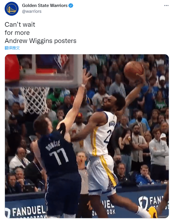 勇士官方晒出维金斯的签约照,嘴哥签字时一脸认真的表情;勇士官方连续更新动态,晒出维金斯和伊戈达拉昔日在赛场上疯狂庆祝的画面,嘴哥和一哥击掌并拥抱,之后维金斯还开心地拥抱科尔;勇士官推晒出维金斯抱着总冠军奖杯的画面,还晒出维金斯上赛季隔扣东契奇的疯狂一扣。