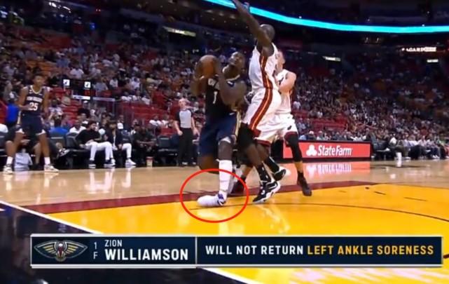 在此前鹈鹕和热火比赛中,锡安在一次突破中不幸扭伤脚踝,脚踝呈90度扭伤,本场比赛,锡安仅仅只打了11分钟就因伤退出比赛,鹈鹕官方宣布锡安因左脚踝酸痛而退出比赛。