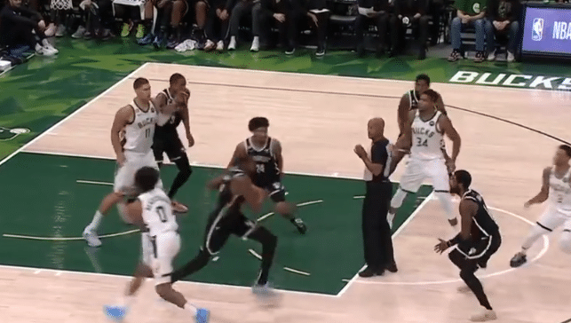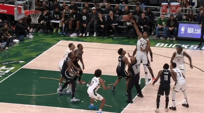 这场比赛字母哥和杜兰特备受瞩目,而杜兰特在一次跳球中,“预判了对手的预判”。这是第四节还剩下7分55秒,字母哥运到前场,他在中路弧顶持球。霍乐迪传给字母哥,被篮网的托马斯防守,裁判示意争球。字母哥2米11的身高比1米91的托马斯高了足足20公分,所以这次跳球托马斯压根没有起跳,但球最后是被杜兰特拿到的。