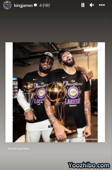 詹姆斯晒出当时夺冠后的合影,当时詹姆斯抱着FMVP奖杯与浓眉抱着总冠军奖杯合影庆祝;詹姆斯还晒出他捧起FMVP奖杯时的视频画面,当时老詹高举奖杯赢得全场的掌声和欢呼声。