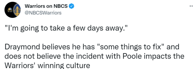 至于自己的道歉有没有被接受,追梦的回应是:“我觉得球队方面有接受我的道歉,至少我得到的反馈是这样的。至于普尔是否接受我的道歉,我不太确定,我想给普尔一些空间。”